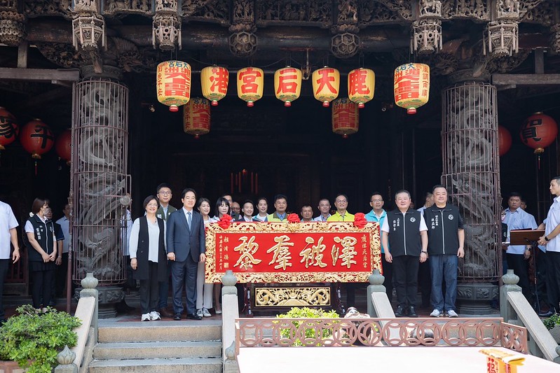 賴清德總統今(10)日上午前往彰化鹿港天后宮參香並揭贈匾額,祈求媽祖保佑臺灣國泰民安、風調雨順。並盼不分族群、黨派共同打拚,團結努力克服種種難關,讓臺灣繼續向前走。