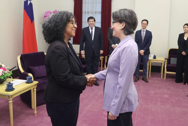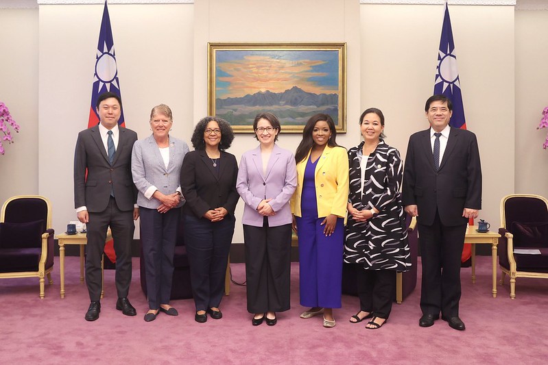 訪團成員尚包括美國聯邦眾議院眾議員布朗莉(Julia Brownley)、德田(Jill Tokuda)、柯珞珂特(Jasmine Crockett),由外交部次長陳立國陪同,前來總統府拜會副總統。