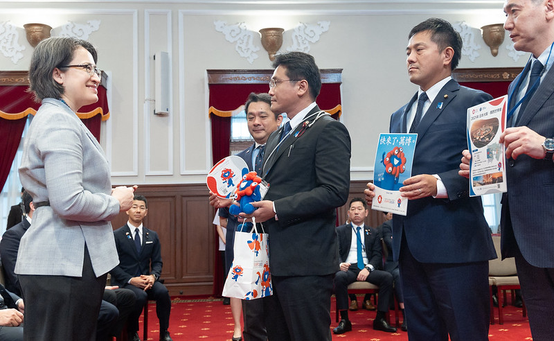 訪團成員尚包括日本國會參議員藤井一博、友納理緒、越智俊之、神谷政幸、永井學、眾議員金子俊平、山本左近及「日本台灣交流協會」台北事務所副代表岡島洋之等,由外交部次長田中光及「臺灣日本關係協會」副秘書長陳志任陪同,前來總統府拜會副總統。