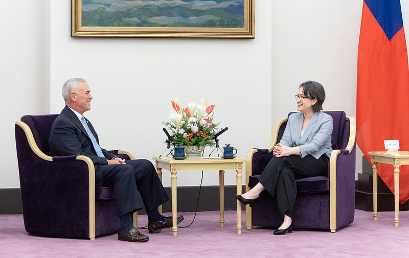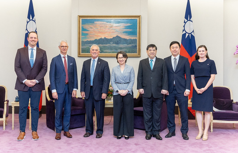 訪賓一行由外交部次長陳立國、美國在台協會台北辦事處代理處長柯傑民(Jeremy Cornforth)陪同,前來總統府拜會副總統。