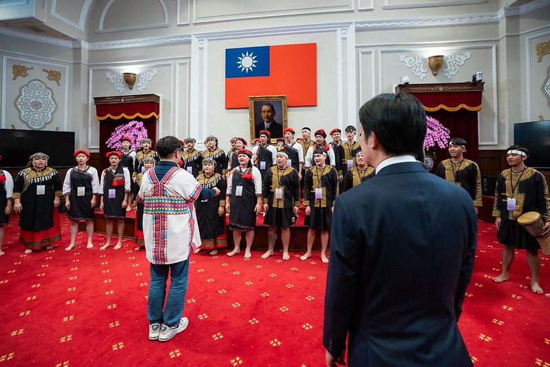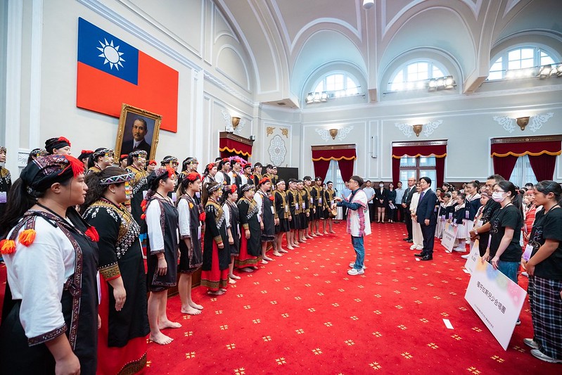總統提到,寶來國中、尼布恩及嘎呼拉斯兒少合唱團,在陳俊志醫師的指導、邱議瑩委員的協助下,將傳統古謠和歌舞融入演出之中,在「世界合唱大賽」拿下金牌和銀牌,讓更多人感受到臺灣豐富的文化內涵,他也要向陳醫師表達肯定之意。