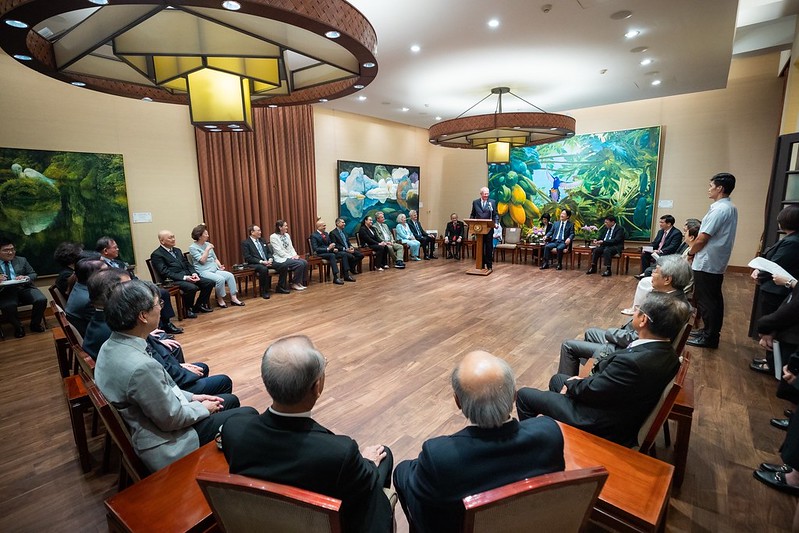 訪賓一行由外交部長林佳龍陪同,前來總統府晉見總統,總統府秘書長潘孟安也在座。