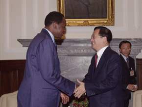 陳總統水扁伉儷今天上午與來華訪問的布吉納法索總統龔保雷(Blaise COMPAORE),在總統府進行第一次的會談。