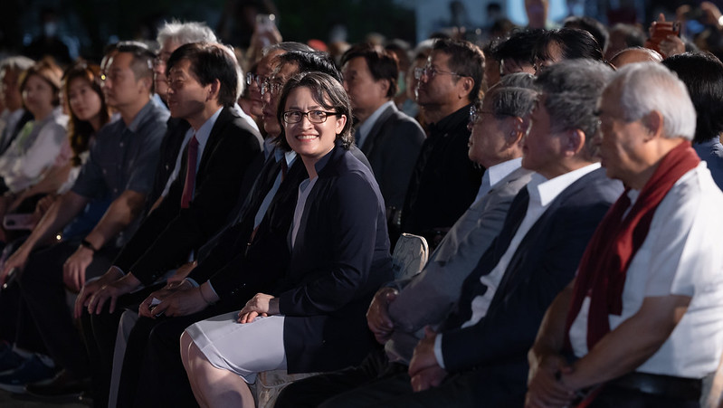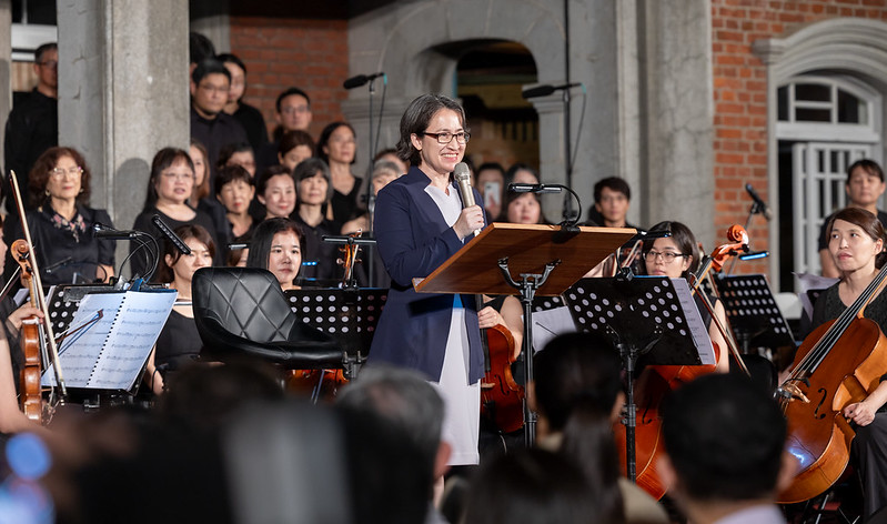 副總統感謝現場所有音樂家,用專業和才華演奏出臺灣人的故事,讓在場所有鄉親能在秋節前夕,一起在美麗且充滿歷史的黃家古厝聆賞音樂會。她也代表總統,祝福大家秋節平安。