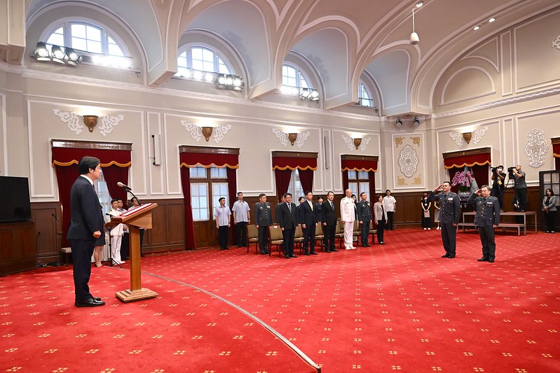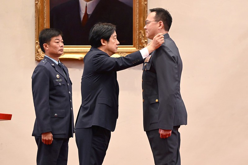 首先,我要恭喜呂文元將軍和蔡宜廷將軍榮升少將,很高興可以為兩位將軍掛階,並且感謝你們對國家的貢獻。