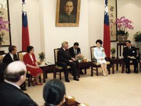 「大西雅圖貿易發展聯盟」訪華團由史諾霍米須郡郡長朱羅勃(Robert Drewel)率領,成員包括西雅圖市市議長珮吉樂(Margaret Pageler)、金郡郡議長孟瑞包(Pete von Reichbauer)、該聯盟理事長穆藍(J. Shan Mullin)及官員、民意代表、企業人士,下午由外交部次長吳子丹陪同,前來總統府拜會副總統。