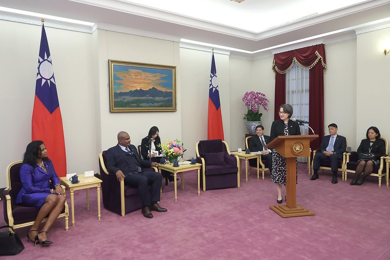 副總統致詞時表示,很榮幸代表臺灣人民及政府歡迎海德副總理首次訪臺。就在幾週前,她以錄影方式慶祝臺灣與貝里斯建交35週年,很高興能與副總理共同慶祝我國的國慶日。