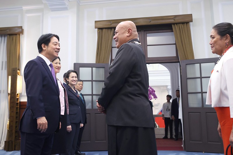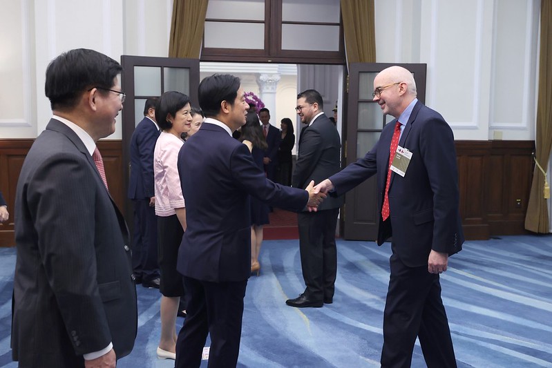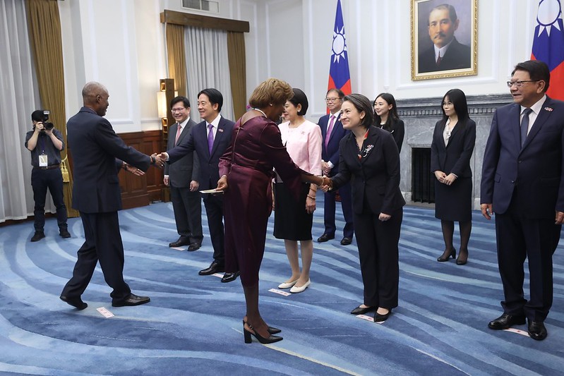 賴清德總統伉儷偕同蕭美琴副總統今(10)日上午在總統府接受參加中華民國113年國慶活動的各國慶賀團、代表們及駐臺使節,致賀我國雙十國慶。