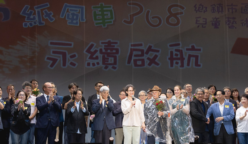 隨後,總統與現場貴賓一同進行紙風車藝術工程第三輪-「永續啟航」啟動儀式。