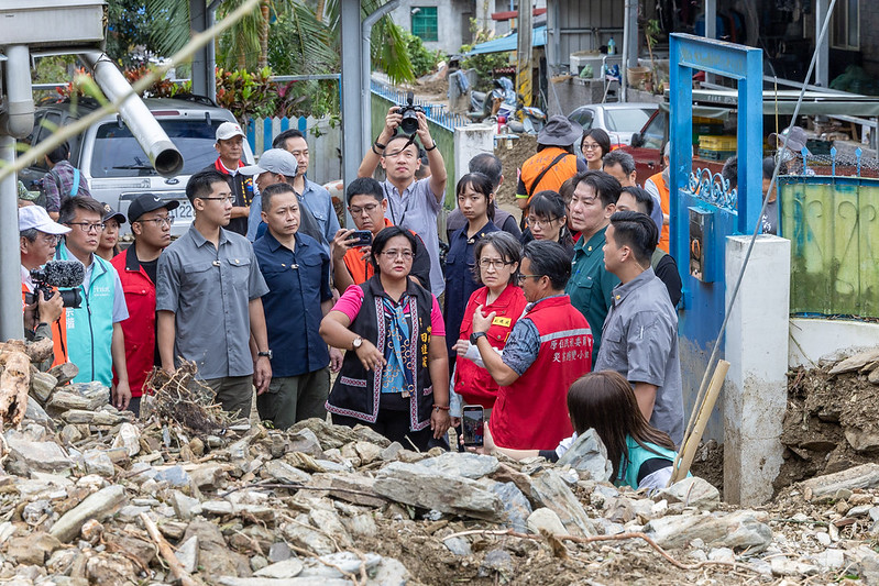 隨後,副總統前往卓溪鄉卓溪部落,聽取鄉長田桂花及農業部水保署簡報當地災情及緊急處理規劃,並實地勘察受土石流影響的部落現況,對部落居民表達關心與慰問,也期盼他們生活早日恢復正常。