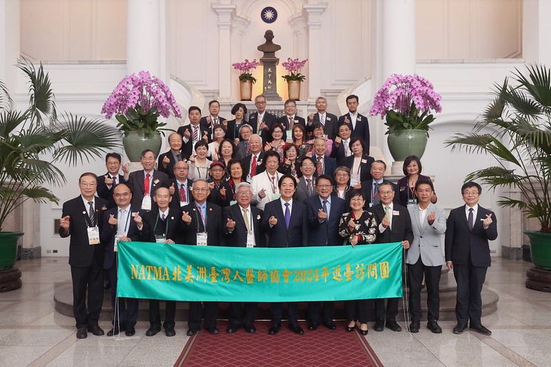 賴清德總統今(7)日上午接見「NATMA北美洲台灣人醫師協會2024年返臺訪問團」,感謝該協會的努力,不僅凝聚北美洲臺灣人的向心力,更為臺灣爭取國際社會的支持。並盼持續在海外發揮影響力,協助深化臺美夥伴關係,更用醫療專業提升臺灣國際能見度,讓世界更加了解臺灣、支持臺灣。