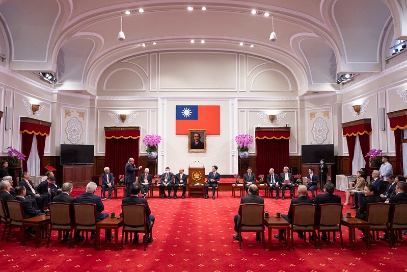 訪賓一行由行政院秘書長龔明鑫及經濟部長郭智輝陪同,前來總統府晉見總統,總統府秘書長潘孟安、副秘書長何志偉也在座。