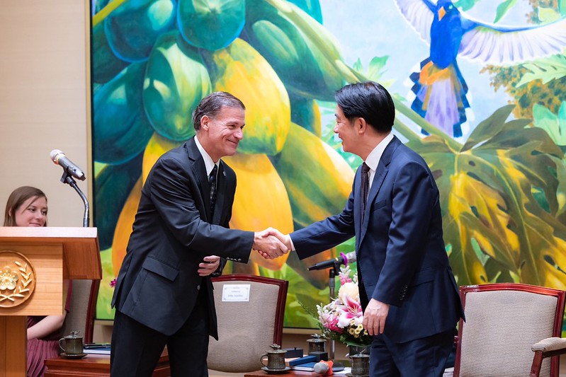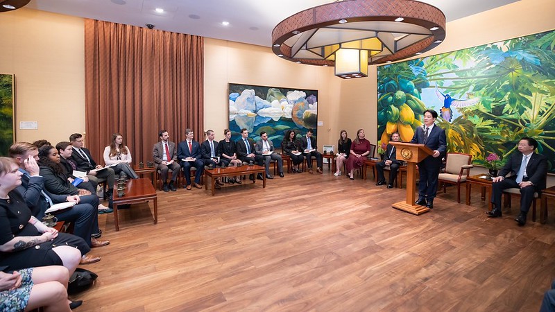 訪賓一行由外交部長林佳龍陪同,前來總統府晉見總統,國家安全會議秘書長吳釗燮也在座。