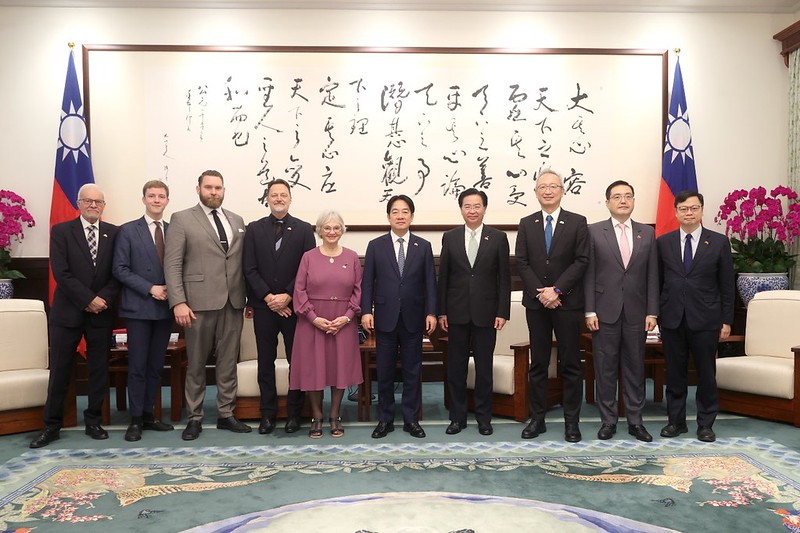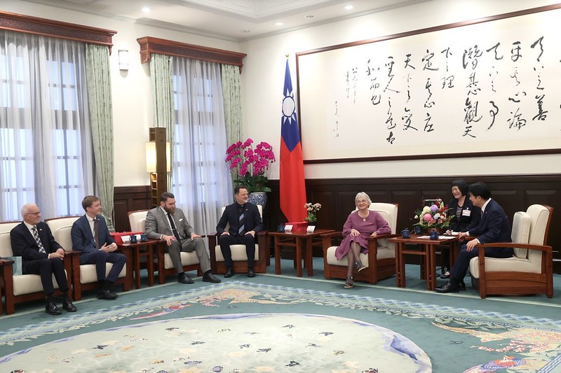訪賓一行由外交部次長吳志中陪同,前來總統府晉見總統,國家安全會議秘書長吳釗燮也在座。