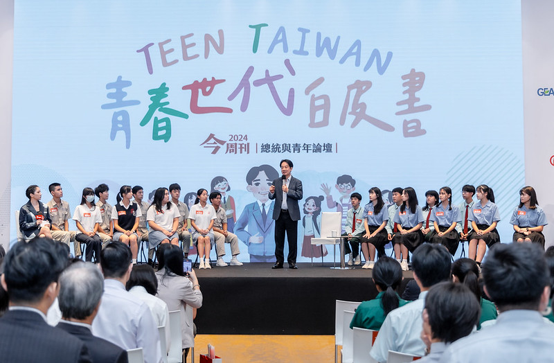 賴清德總統今(16)日下午出席「2024 今周刊 『TEEN TAIWAN青春世代白皮書』總統與青年論壇」,向學子們分享他上任後推動的國家重要政策,包括「0-22歲投資未來世代」、「青年百億海外圓夢基金計畫」、「均衡臺灣」等,投資臺灣下一代人才,讓年輕人有機會實現夢想,也期盼共同響應2050淨零轉型,讓臺灣更加進步。