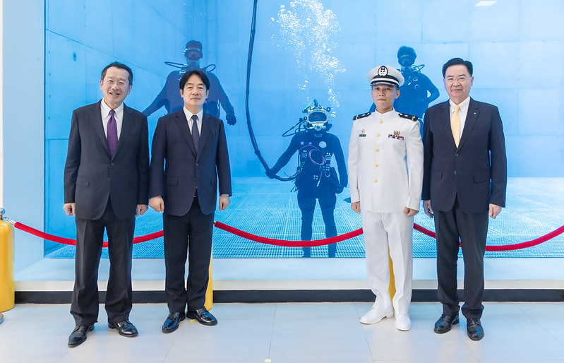 總統指出,水下作業大隊肩負著海事救難救助、水下障礙物與械彈排除等任務,都需要高度的技術和專業的潛水訓練。因此,這次的新建工程特別打造全新的潛水訓練中心,除了是全國公部門最深的訓練池,還配置了能夠依照訓練需求調整深度的層板。訓練池也設有觀景窗,讓教官可以隨時觀察學員狀況,提升訓練的效率及安全。