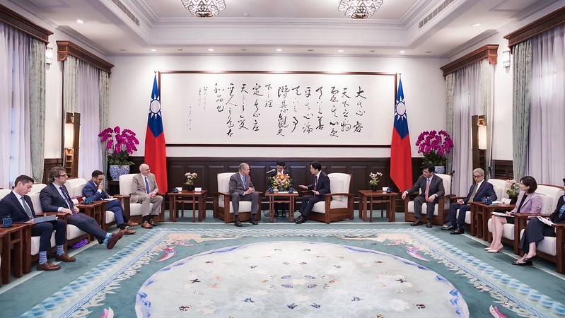 訪賓一行由外交部長林佳龍及「美國在台協會」(AIT)台北辦事處處長谷立言(Raymond Greene)陪同,前來總統府晉見總統,國家安全會議副秘書長徐斯儉也在座。