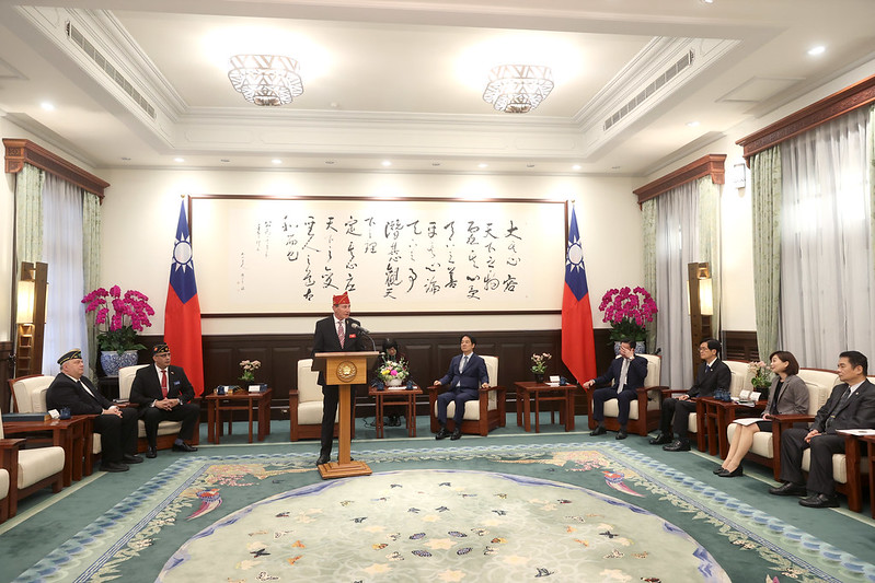 訪賓一行由國軍退除役官兵輔導委員會主任委員嚴德發陪同,前來總統府晉見總統,國家安全會議秘書長吳釗燮也在座。