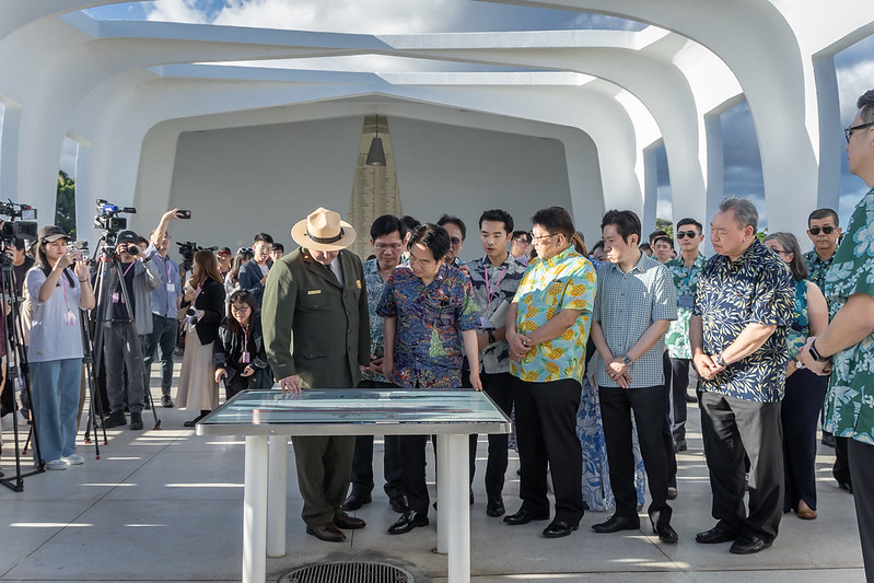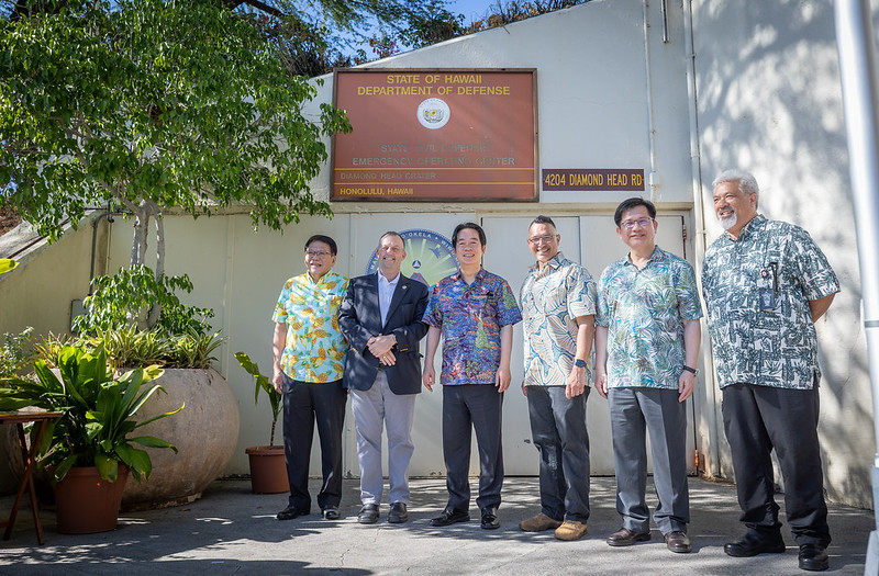 賴清德總統「繁榮南島 智慧永續」之旅,於夏威夷當地時間30日下午(臺北時間12月1日上午)參訪夏威夷州急難管理署(HI-EMA)暨亞利桑納號(USS Arizona)戰艦紀念館。