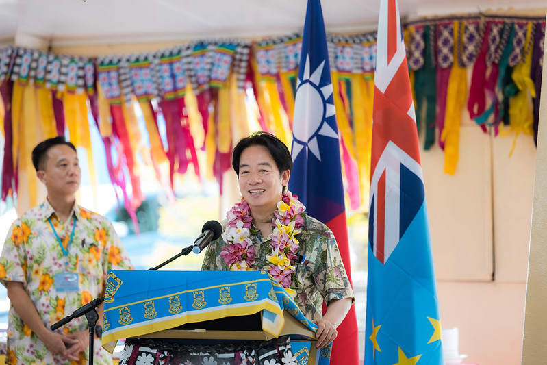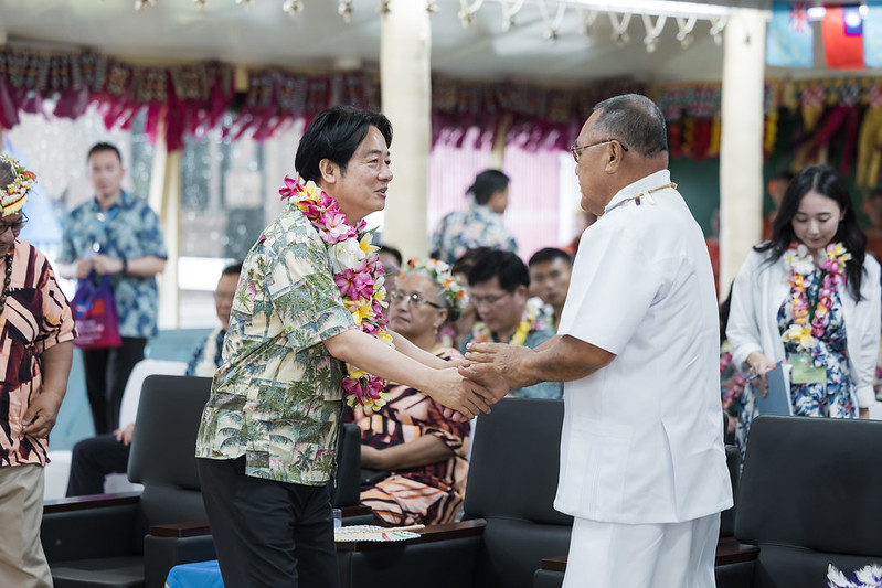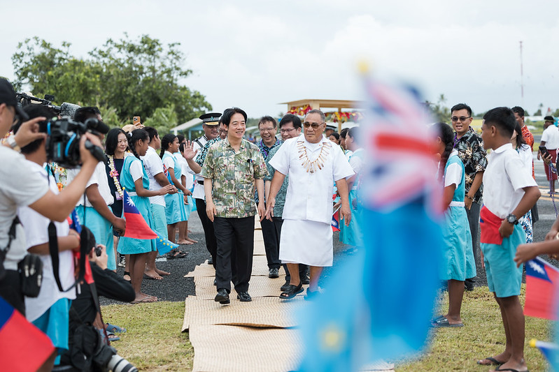 專機停妥後,我駐吐瓦魯大使林東亨與吐國大禮官Oilau Paeniu登機迎接賴總統,外交、勞工及貿易部長帕納巴(Paulson Panapa)及警察總監Piliota Viliamu迎於機梯前,並陪同賴總統沿傳統椰蓆登上受禮臺,總督法拉尼(Tofiga Vaevalu Falani)於受禮臺親迎,一同在受禮臺檢閱警察儀隊,致敬後步入集會亭,由總理戴斐立(Feleti Penitala Teo)於入口處迎接,接受獻戴花冠。吐國以傳統舞蹈表演熱情歡迎,總統也趨前向表演者噴灑香水,表達讚美與肯定之意。