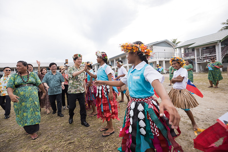 稍早,總統一行前往Nauti小學參訪,由吐國教育部長何羅納(Hamoa Holona)及校長Kainaki Taula迎接,前往操場司令臺欣賞學生表演傳統歡迎舞蹈。總統與同學親切互動,並贈送具有臺灣味的「茄芷袋」及文具組合供同學們留念,現場氣氛熱絡愉快。