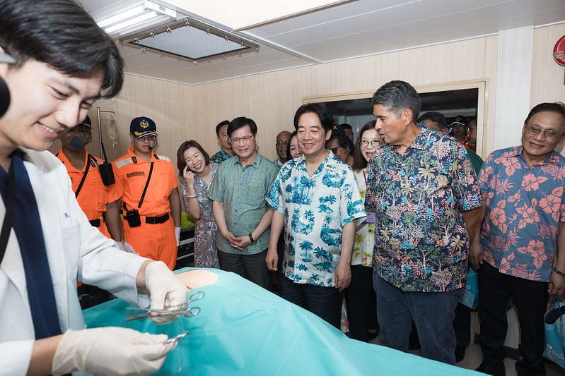 賴總統說,今天,我們「國艦國造」的「雲林艦」也來到帛琉,這是我們現役最大型的海巡艦。船艦上設有手術室、負壓隔離病房,也提供直升機起降,讓臺灣可以在海上人道救援貢獻更大的力量。