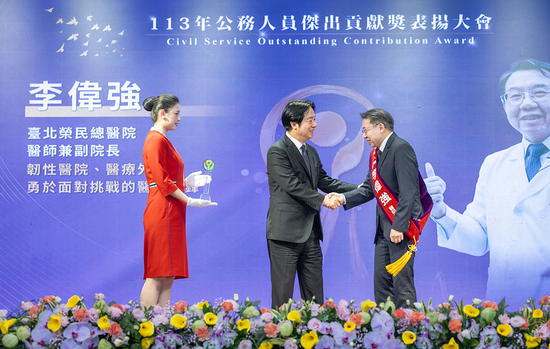 賴清德總統今(17)日下午出席「113年公務人員傑出貢獻獎表揚大會」,肯定所有得獎者樹立典範,為打造更美好的臺灣做出卓越貢獻;並期許公務同仁持續強化數位素養,積極將智慧治理的理念落實到更多施政項目中,讓人民更幸福、國家更強、也讓世界擁抱臺灣。