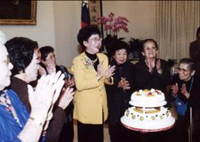 副總統首先獻花給林會長,感謝台北市婦女救援基金會長期以來出錢出力,協助前慰安婦阿嬤們向日本政府進行索賠。隨後,副總統也以寫有「阿嬤我們愛妳」字樣的雙層蛋糕向阿嬤們表達敬意。