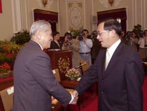 「美國二二八受難者家屬返鄉團」及「台灣二二八受難家屬團」下午由廖德雄團長及王克雄團長領隊,並在僑務委員會副委員長陳榮傑的陪同下,前來總統府晉見總統,總統府副秘書長陳哲男也在座。