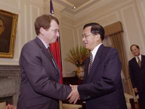 總統並再次向訪賓強調,我國對外關係已從重視美日,擴及至歐洲,而即將赴比利時履新的外交部李大維次長,也將肩負起雙方溝通橋樑的職責,期盼台灣與歐盟的對話機制及互設代表處的願景及早實現。