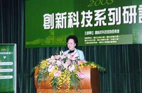 呂副總統秀蓮女士今天以總統府科技諮詢委員會主任委員身分,全程參加由該委員會舉辦的「二○○三創新科技系列研討會」系列二:「科技與產業」研討會。