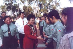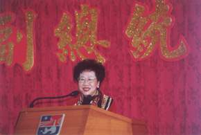 副總統進一步表示,最近金門因小三通而名聲響亮,受到國人與世界的關注。過去鄉親在烽火連天的戰地,擔任國防的前哨,而今隨著小三通的實施,金門已成為和平、民主的前哨站。