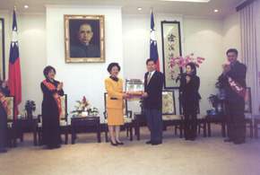 二○○一中華美容美髮「金藝獎」得獎人下午由立法委員王雪峰、中華美容美髮技藝協會理事長吳國俊等陪同,前來總統府會見副總統。