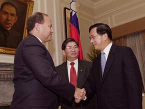 陳總統水扁先生今天上午在總統府接見猶太人國際安全事務協會訪問團主席奇斯卡(Jonathan Kislak)一行十二人,代表中華民國政府與人民對他們的遠道來訪,表達誠摯歡迎之意。