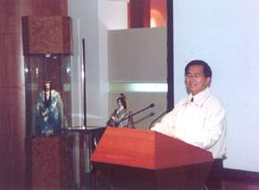 陳總統水扁先生今天下午前往位於雲林虎尾的霹靂國際多媒體公司,參觀黃海岱大師的布袋戲片廠並欣賞布袋戲表演。