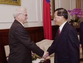 瑞典首席國會監察使伊克蘭德下午是由監察院長錢復及監察委員趙榮耀陪同,前來總統府晉見總統,總統府副秘書長簡又新也在座。