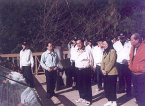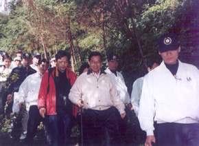 陳總統水扁先生今天上午前往宜蘭縣大同鄉棲蘭山歷代神木園區,關心棲蘭山區保育及觀光產業的發展,並在陳玉峰教授的引導及介紹下,觀賞園區中的神木群。