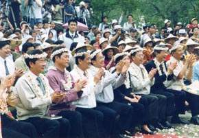 陳總統水扁先生今天上午前往苗栗三義地區,參加「客家桐花祭」開幕儀式,除和大家合唱客家歌謠、朗誦客家詩外,致詞時也以客語向所有客家鄉親問候致意。