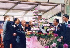 陳總統水扁先生今天上午前往台北縣石碇鄉,參加石碇國小百週年校慶,除與蘇貞昌縣長、校友代表等一同切生日蛋糕,為百週年校慶紀念牆揭幕外,也應邀頒贈紀念品給四代同堂校友、人瑞老校友,並致詞。