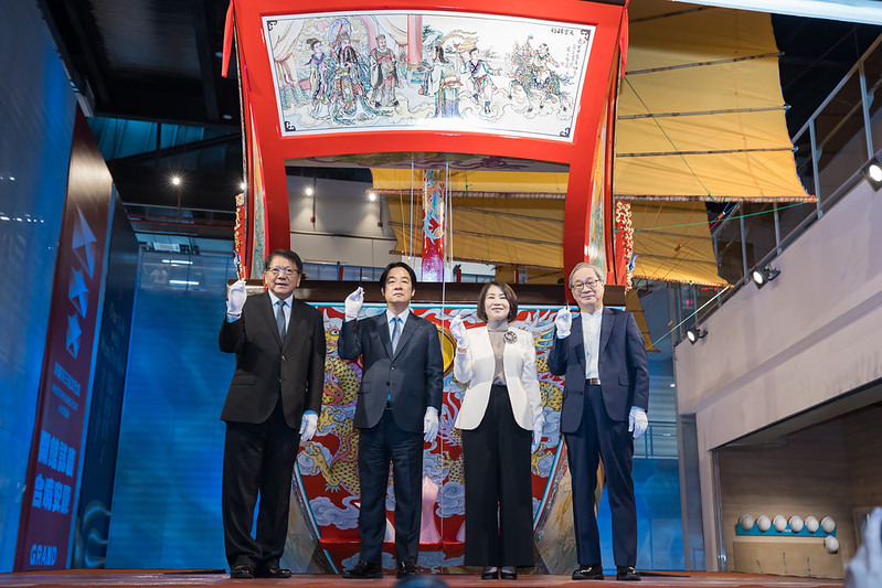 隨後,總統與現場貴賓一同進行啟動儀式,接著聽取王船館解說導覽,並為王船點睛。