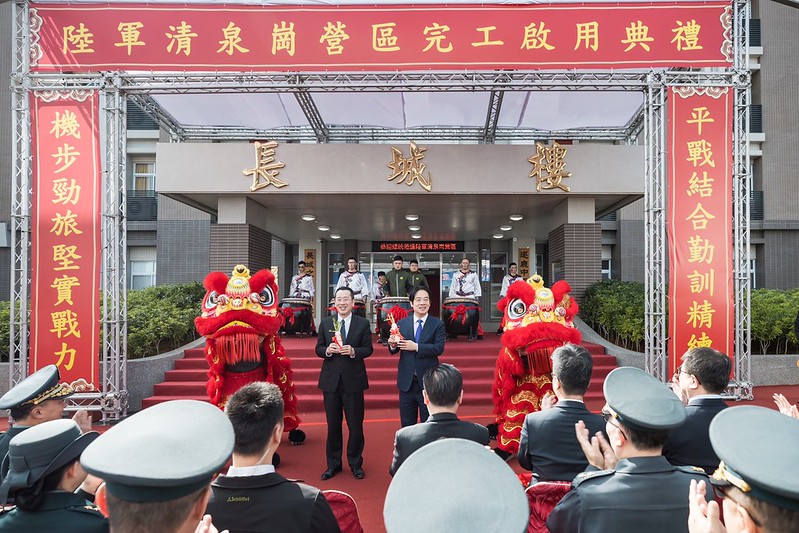 今天非常高興來到陸軍清泉崗營區,主持新建營舍啟用典禮,也特地前來感謝國軍弟兄姊妹堅守崗位,讓國人能夠安心生活。