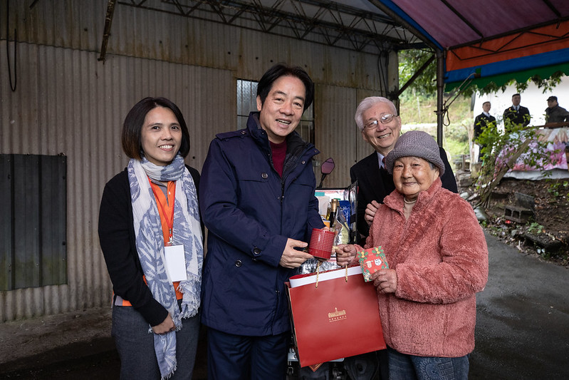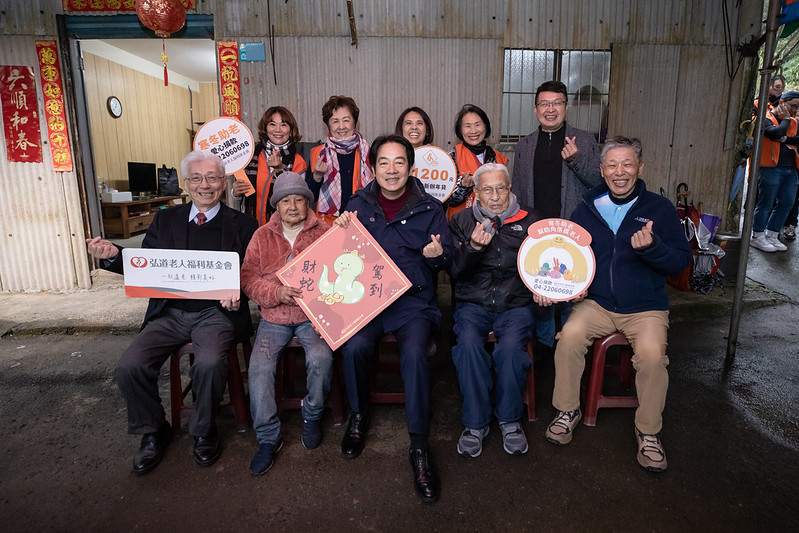 賴清德總統今(10)日上午前往新北市三峽區出席弘道老人基金會「寒冬助老拜早年陪伴獨居長輩圍爐」,拜訪87歲的趙阿哖阿嬤,與她一起貼春聯及圍爐,以實際行動關懷獨居長輩。