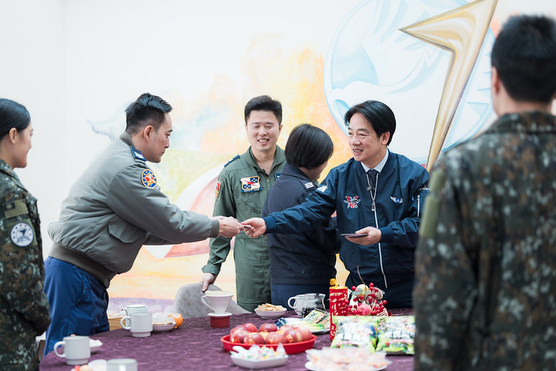 在與官兵互動過程中,有官兵詢問總統過年是否安排休假,總統回應表示,當總統基本上就是24小時待命。過年期間,他會走訪各地廟宇向民眾拜年,也會到國軍單位慰勞在崗位上辛苦待命的夥伴。另外,也有官兵提到,賴總統是首位在漢光演習前以「精神戰力專案教育」、為官兵加油打氣的總統。