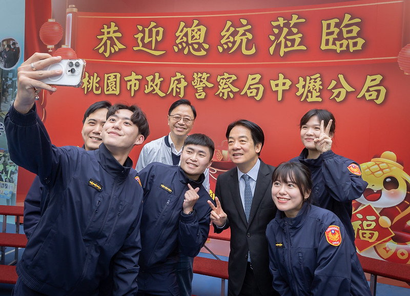 農曆春節將屆,賴清德總統今(25)日上午前往桃園勗勉「桃園市政府警察局中壢分局」及「桃園市政府消防局第二救災救護大隊暨中壢分隊」,感謝警消同仁一年365天、一天24小時,站在第一線保護國人安全的貢獻與付出。並表示,「2025台灣燈會在桃園」將於2月12日開始,期盼活動平安順利,他也邀請國人多多前來桃園參加。