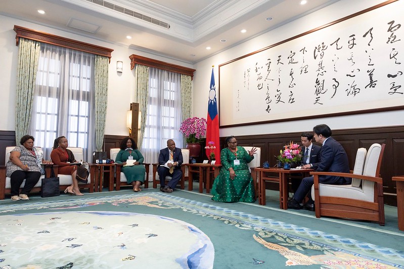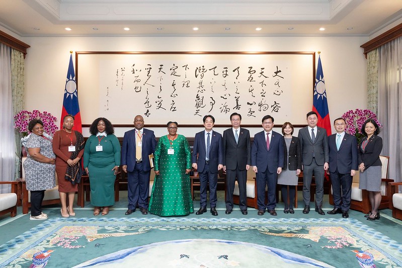 訪賓一行由外交部長林佳龍、史瓦帝尼王國駐臺大使蒙西比(Promise Sithembiso Msibi)陪同, 前來總統府晉見總統,國家安全會議秘書長吳釗燮也在座。