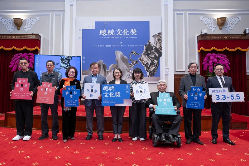 兩年一度的「總統文化獎」徵選活動即將起跑,蕭美琴副總統以文化總會副會長暨第13屆「總統文化獎」籌備委員會總召集人之身分,於今(3)日下午出席在總統府舉行的「第13屆總統文化獎徵選記者會」。副總統表示,本年主題為「文化無框 綻放自由」,希望藉此獎項表彰長期關照、耕耘這片土地的人,同時彰顯臺灣文化價值,並籲請國人一同參與,讓更多人認識臺灣這塊多元、包容、開放的土地。