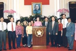 此外,副總統上午也分二梯次在總統府接見包括桃園縣議員彭聖富、林丕章等桃園鄉親共約二百四十多人。副總統說,今天是桃園縣的盛事,不但在總統府前廣場有攤位的展出,在總統府內也能看見桃園縣的各項文物,可喜可賀。