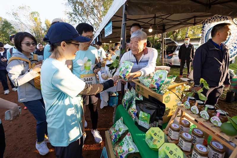 隨後,副總統前往瑞穗國小操場參觀農特產品等攤位,與攤商們親切互動,接著參與路跑活動6公里,並受頒完賽證明。