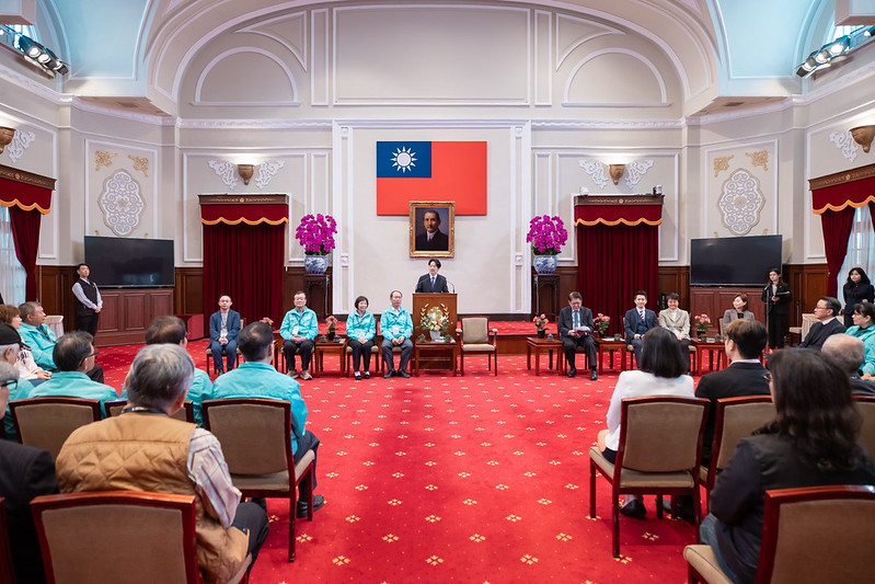 總統致詞時表示,非常高興能在總統府歡迎大家,看到許多熟悉的面孔,真的非常親切。並提到,感謝黃仁杼理事長及各位夥伴,長年以來努力傳承、發展客家文化。鍾肇政先生說過:「沒有客家話,就沒有客家人」。客語的俗諺也說:「寧賣祖宗田,莫忘祖宗言;寧賣祖宗坑,莫忘祖宗聲」,這些都提醒我們不能忘本,不能忘記自己的文化和語言,這不僅僅是客家鄉親的信念,也是我們長期的堅持。