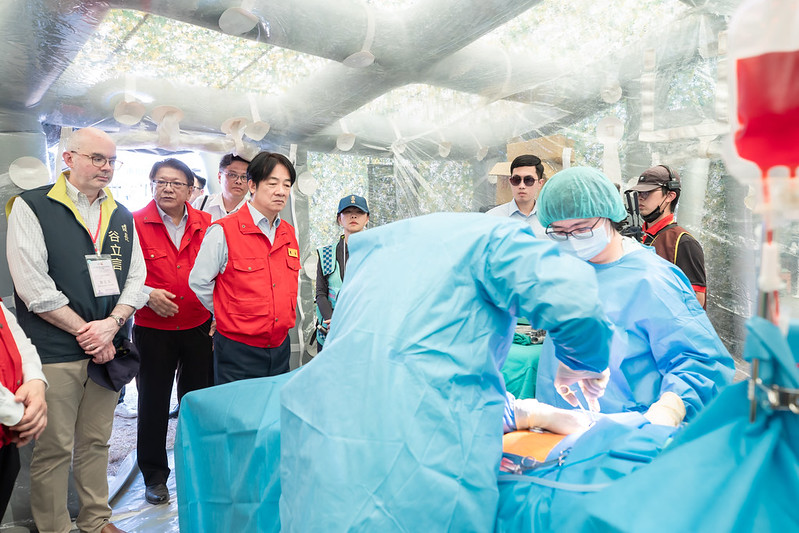 總統表示,他上任後在總統府成立「全社會防衛韌性委員會」,繼去年12月的桌上推演,這次來到臺南進行小規模實地演練,並預計在4月進行城鎮演習,目的是希望打造臺灣社會的韌性,妥善因應當發生天災地變、重大意外事故造成大量傷患,或是區域地緣政治變化時能有所準備。有道是「預防勝於治療」、「毋恃敵之不來,恃吾有以待之」。我們有準備,當事情發生時就能減低傷害。希望不僅透過國軍,也透過全社會防衛韌性力量,確保臺灣安全,並展現實力以達到和平的目標。